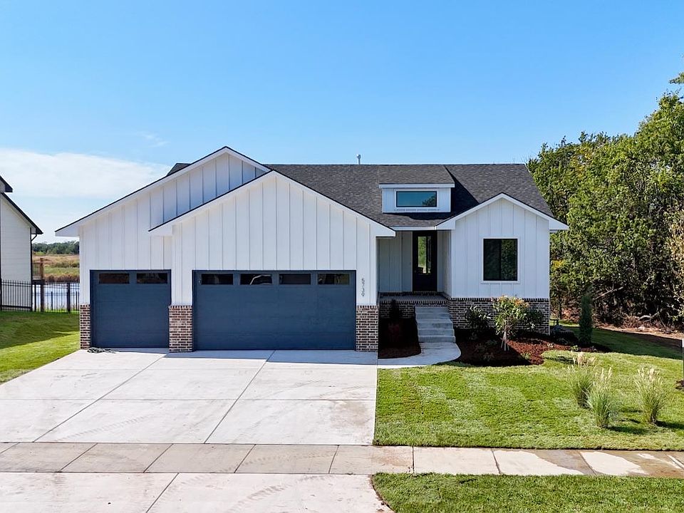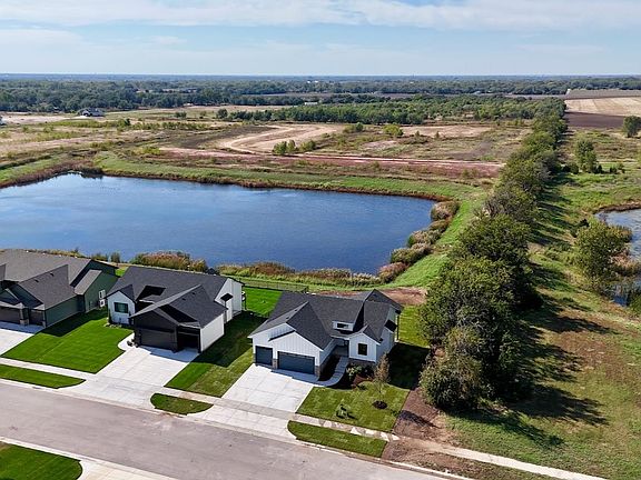 Discover the Anne Marie Plan by Homes-R-Us—where timeless architecture meets modern comfort in a truly one-of-a-kind lakefront setting. Nestled on a unique lot bordered by HOA green space and a natural land bridge between two serene lakes, this home is surrounded by mature trees offering privacy and picturesque views. Enjoy vaulted ceilings, LVP flooring, and a cozy electric fireplace in the spacious living room. The gourmet kitchen boasts quartz countertops, abundant cabinetry, and a walk-in pantry. A generous dining area showcases large picture windows framing lake and wooded views. The luxurious primary suite features a dual vanity, tile shower, and walk-in closet with seasonal hanging. Two additional bedrooms and a full hall bath complete the main floor. The mid-level walk-out leads to a sprawling covered patio—your private retreat among the trees. The basement is ready for your vision, with a proposed layout including a family room, wet bar, 2 bedrooms, and full bath. Choose to finish it with the builder or create instant equity over time. Just a short stroll to the neighborhood pool, playground, and basketball court—this home has it all! Some information may be estimated and is not guaranteed. Please verify schools with USD 262.