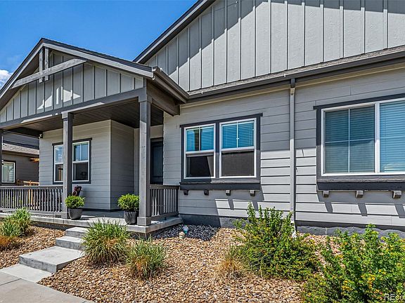 Welcome to this charming semi-detached home in Brighton Crossing! This gorgeous 3-bedroom residence features a lovely porch with a straight view of the community park & sports courts. Inside, you’ll discover a bright & spacious open floor plan with tall ceilings, recessed lighting, stylish light fixtures, popular vinyl flooring, and plush carpet in all the right places. The inviting dining room allows you to entertain thanks to its perfectly flowing design, while the cozy living room promotes a space for relaxation by the gas fireplace. The immaculate kitchen showcases ample wood cabinetry, granite countertops, stainless steel appliances, and an oversized island with eat-in space. The convenient front den (bonus space) is ideal for an office. The primary bedroom offers tons of storage thanks to its multiple closets. The pristine ensuite is comprised of a large dual vanity & a sizable walk-in shower. The full basement is a blank canvas, allowing you to get creative; it can be a game room, an entertainment area, or a family room, your choice! Here, you’ll also find a full bathroom and an additional bedroom great for overnight guests. The bountiful laundry room has attached cabinetry, a utility sink, and a closet for added storage. The private side yard includes a nice patio for relaxing with your favorite beverage. This home is a true dream! Across the street from the park, in a community with fantastic amenities, close to schools & markets, easy access to major roads, and within a 30 min drive to Downtown Denver. What is not to like? Hurry to see before it’s gone!