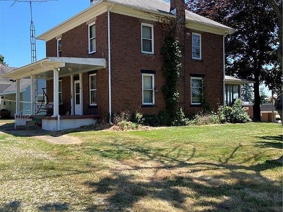Offering a 2 Story 4 bed 1 bath brick home on a nice corner lot with an unfinished basement. This home has tons of opportunity with a large dinning and separate living room with an eat in kitchen. The upstairs offers 4 bedrooms or 1 could become an office. The home has a nice enclosed front porch and a nice open back porch for relaxing. Other amenities to this property are the 2 nice out buildings, pole building is 28x56 limestone floor with automatic door opener wired for 110/220 both. The second building is a detached garage 24x24 with automatic door opener and a nice concrete floor. This property has tons of potential and will sell at Absolute Auction August 6th at Noon. Terms 10% nonrefundable deposit day of auction, balance due at closing. All inspections should be completed prior to bidding at buyer's expense. All information expressed or implied is derived from sources deemed reliable but no guarantees. "PROPERTY SELLS AS IS."