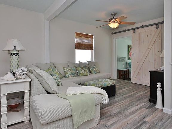 ACCEPTING BACK UP OFFERS..Welcome to paradise! Beach cottages like this one with in-ground pools do not come available very often. Located just 120 yards from Upham Beach and the Gulf of Mexico, this wonderful home is simply adorable. From the moment you enter on to the covered porch with its quaint touches, you will know that you have found something special. HGTV type of updates surround you and include open floor plan with laminate and tile flooring, light and bright kitchen which overlooks the living room, barn doors leading to both the master bathroom and also the 2nd bedroom, molding, wainscotting, designer paint and french doors. The main home includes 2 bedrooms and 2 baths and has updated windows and brand new roof. Relax on your covered lanai as you gaze at the fenced, tropical oasis and listen to the sounds of the built in fountain. The pool is surrounded by vintage pavers and lovely plantings, including palms and jasmine. The pool house is a complete additional home including kitchen, bath and bedroom and is a wonderful place for guests or just more space to spread out. Just a 2 minute stroll to the beach, or perhaps walk over to Woody's Waterfront Restaurant or Corey Avenue and its quaint shops and restaurants. One of a kind and a Must See! 04/11/17