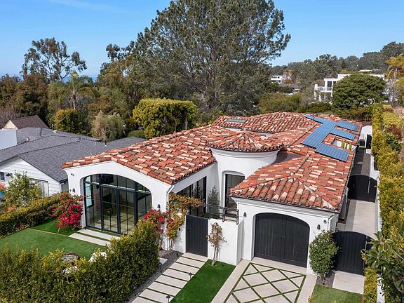 Welcome home to truly one-of-a-kind newly built Santa Barbara inspired ranch home completed in 2021 with sweeping ocean views in the heart of Olde Del Mar! This rare Santa Barbara inspired property was designed by renowned architect Steven Dalton and luxury home builder Paul Munsch. This state-of-the-art home boasts panoramic ocean views from the front yard, through the great room and kitchen. Nestled on a 12,600sqft lot this up to a ravine offering additional privacy. Fall in love with the versatile floorplan providing seamless indoor/outdoor living with 4 bed, 3.5 baths, indoor/outdoor fireplaces, front fire pit, theatre room, office and private outdoor courtyard. Every custom form and function detail was incorporated without sacrificing warm but sleek sophistication; from the La Cornue stove, resort style hot tub off the primary bath, outdoor beach shower, and La Cantina kitchen window system. Whether you’re in town, on the go or on vacation, you’ll have complete peace of mind with state-of-the-art technology infrastructure components controlled via your smartphone. After you fall in love with the home’s technology, you’ll be thrilled with the energy consciousness created by 29 solar panels and a dedicated 220a electric vehicle charger while enjoying the warm and sunny beauty of this Olde Del Mar Gem.