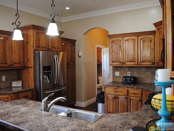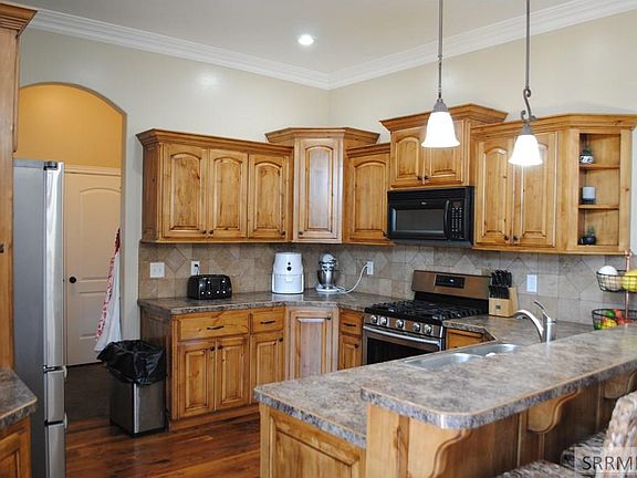 Don't miss this incredible home in Rigby. Location is central to everything. Beautiful landscaping with automated sprinkler system. Open deck, Open patio, mature lawn, mature trees. Home is a wide open floor plan. Formal living or Formal dining upstairs. Custom hardwood floors on the main floor. Main floor laundry with 1/2 bath in a mud room. Oversized 2 car garage with 10 ft doors. Master suite has large vanity with double sinks, separate tub and shower with walk in closet. Additional Large bedroom and office on the main floor as well. Basement is fully finished with 3 additional bedrooms, a family room, custom fire place and an additional sitting room. Fun kids play area.
