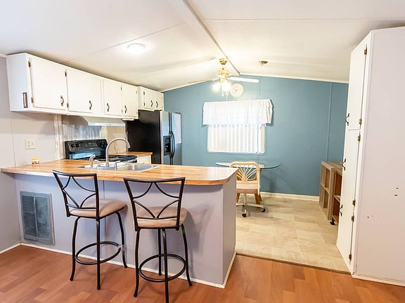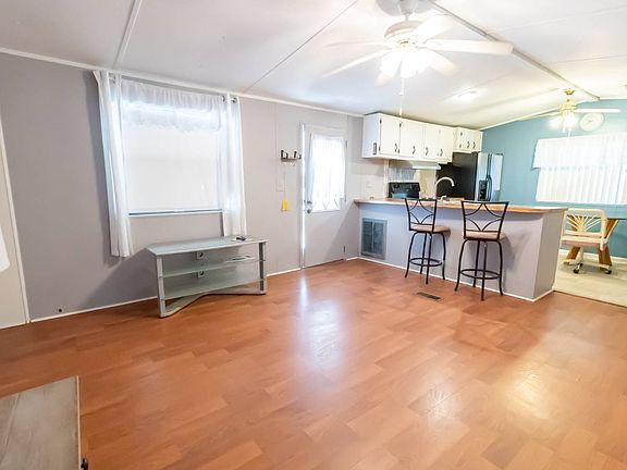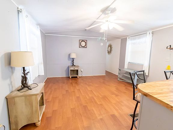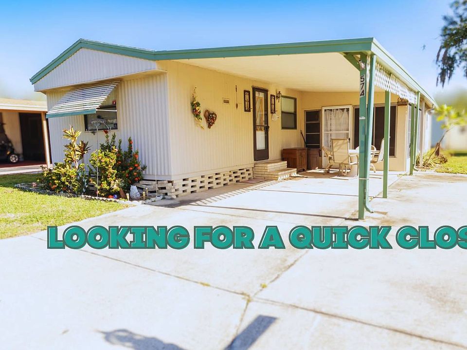 Experience Florida living in this 2-bedroom, 1-bathroom home nestled within Hidden Golf Club community. This home showcases an updated eat-in kitchen complete with newer cabinets, countertops, and appliances, perfect for both everyday meals and entertaining guests. Laminate flooring flows seamlessly through the main living areas, offering both style and effortless maintenance. A fully enclosed Florida room extends your living space, while informal outdoor seating in the extra-large driveway provides additional spots to savor your morning coffee. Storage enthusiasts will appreciate the ample space throughout, including a generous pantry conveniently located off the kitchen. The primary bathroom has been tastefully updated with a modern walk-in shower, and the exterior shed houses laundry facilities along with additional storage options. Hidden Golf Club is an active 55-plus gated community situated on beautiful Lake Henry, offering residents an impressive array of amenities including a heated pool, clubhouse, onsite restaurant, 18-hole executive golf course, dog park, and multiple recreational courts for tennis, pickleball, and shuffleboard. The community's vibrant social calendar features everything from dance nights and potluck dinners to golf leagues and holiday celebrations, ensuring there's always something exciting happening. This friendly neighborhood truly embodies the relaxed yet engaging lifestyle Central Florida is famous for. OUT OF TOWN!?!? NO WORRIES, WE CAN DO VIRTUAL SHOWINGS AND WE ARE ABLE TO DO PAPERWORK REMOTELY. FEEL FREE TO CALL, TEXT, OR EMAIL ME. I LOOK FORWARD TO BEING YOUR RAY OF SUNSHINE AND HELPING YOU CALL YOUR NEW HOUSE A HOME! All listing information is deemed reliable but not guaranteed and should be independently verified through personal inspection by appropriate professionals. Our company does not and cannot guarantee or warrant the accuracy of this information or the condition of this property. Measurements are approximate. The buyer assumes full responsibility for obtaining all current rates of lot rent, fees, and pass-on costs. Additionally, the buyer is responsible for obtaining all rules, regulations, pet policies, etc., associated with the community, park, or home from the community/park manager. Our company is not responsible for quoting said fees or policies. Financing is available through 3rd party lenders. Please contact the sales agent for additional information