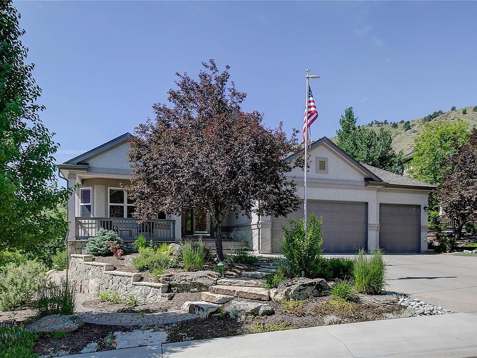 Welcome Home! This MAIN FLOOR MASTER RANCH home has AMAZING MOUNTAIN VIEWS AND BACKS TO OPEN SPACE! It features an open floor plan, vaulted ceilings, hardwood floors, granite, eating nook, covered deck with mountain views; office with bay windows and French doors; living room; dining room; two-sided fireplace; large master suite with views, 5-piece bath with heated floor, large walk-in closet, guest suite with private bath; and a large laundry room. The walk out lower level is perfect for entertaining! The family room offers large windows; wet bar/kitchenette complete with sink, dishwasher, and refrigerator; guest suite with full bath and spacious closets; powder room; exercise room; a fourth bedroom (or flex space) with walk-in closet and lots of windows; 400 sq. ft storage room including over 30 ft. of floor-to-ceiling shelves and 6x9 cedar closet. Whole House Water Purifier. HEATED GARAGE WITH EPOXY FLOORS. This home is meticulously maintained and a must see. It won't last long!