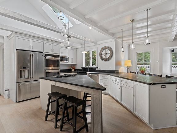 - Features: Beamed Ceilings, Flooring - Hardwood, Countertops - Stone/Granite/Solid, Kitchen Island, Stainless Steel Appliances