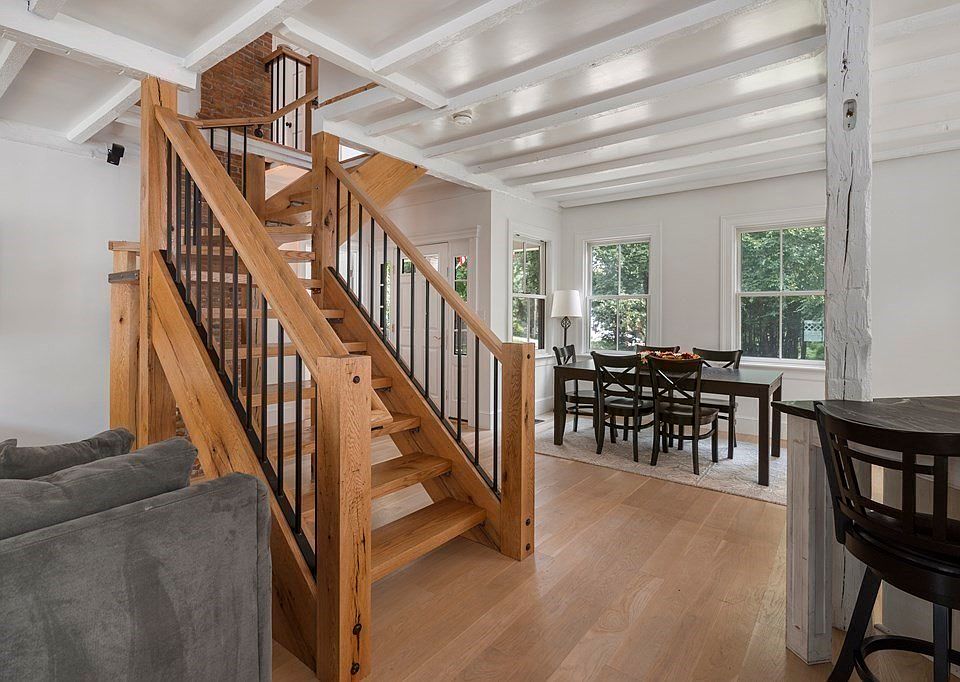 This is your opportunity to get into the Furnace Village area before prices increase. New traffic lights, sidewalks & bike lanes are all part of the Town & State plan for the redevelopment of this area. ( Traffic light at Poquanicut planned within next 18 months). This unique home features an engineered wooden staircase, white oak floors, and modern kitchen with soapstone counters, stainless steel appliances, and lots of light. A high-efficiency Lochinvar heating system ensures that the home is kept cozy all winter and the central AC will keep you cool all summer long. This flexible floorplan gives you two large bedrooms upstairs and one or possibly two downstairs. One room is currently used as a home office with a mezzanine reading nook. This room opens to the multi-level, low-maintenance back deck overlooking the yard. The connected barn has heat & Ac PLUS a garage under that is perfect for your ATVs or sports car. Set up your private showing today!