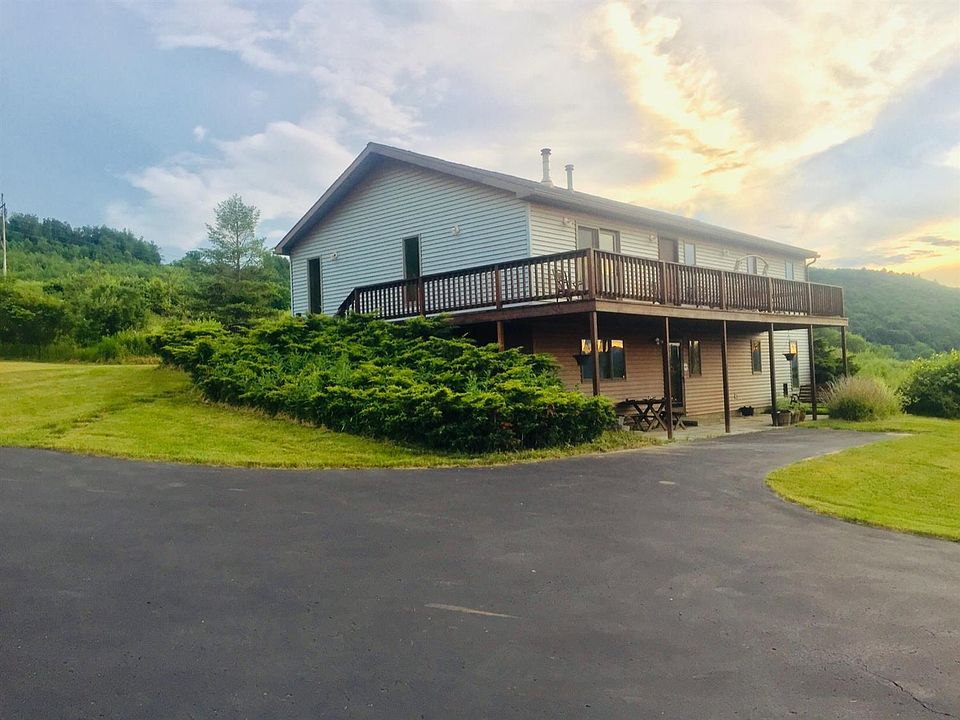 Looking for a weekend getaway home in the Western Catskills? Or maybe you can work from home and want to be where the air is fresh and clean, no traffic, low stress and you can see thousands of stars at night? I have a wonderful option for you. Bright, spacious, 3 BR, 2 Bath Ranch on 2 park-like acres. Living Rm/Dining Rm Open Floor Plan has vaulted ceilings, a Stone fireplace, French Doors to a full-length balcony overlooking gorgeous long views. Nice kitchen with Pantry, 2 BR's; Spacious Master w/Private 3/4 bath, and 2nd BR + another bath. Ceramic Tile Floors throughout.The lower level features another BR, or Office, a Laundry area, large comfortable Family Room, + workshop in the Utility Room. Bluestone patio at the entrance, and a nice deck in the back of the house. Energy efficient home. Metal barn accommodates 4 cars, mowers, quads. Convenient to I-88 Binghamton or Oneonta, shopping, restaurants. Your new home awaits!