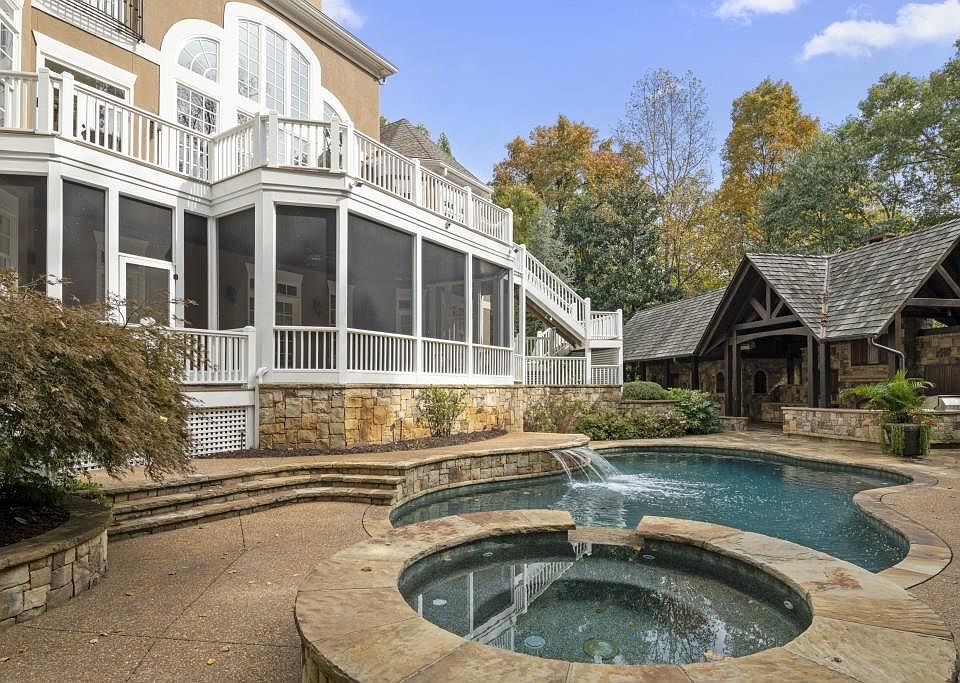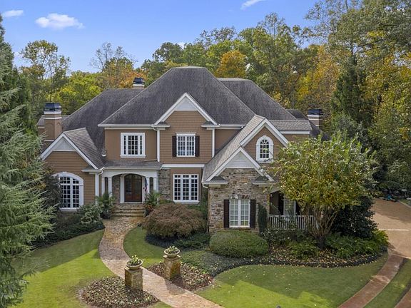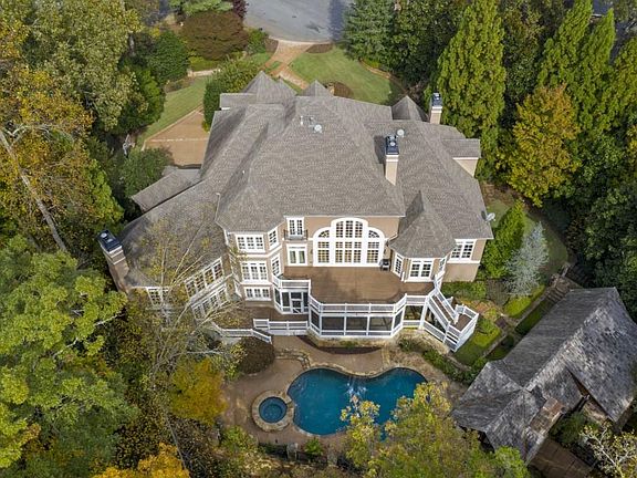 Stunning renovated home on 1.4 acre affords a lifetime of privacy as it rests at the edge of the Chattahoochee National Forest. Unwind in your tranquil sauna & private meditation room w/stone waterfall wall or host a garden party fireside at the expansive outdoor kitchen, found in the natural stone pool house, accented w/timbers and flanked by a Pebbletech pool & surrounded by award winning landscaping. The recently renovated chef's dream kitchen awaits you, outfitted w/white quartz, beveled cabinets, a 5 burner Wolf cooktop, SS app, white penny tile backsplash & more. The butler's pantry is conveniently located adjacent to the kitchen with prep sink, wine rack, beverage center, & extra storage. The keeping room features a fieldstone fireplace & bay windows overlooking the backyard. Curl up to one of 5 fireplaces with a warm cup of cocoa & a good book. Palladian windows in the living room look out at wooded bliss. The Master suite features an abundance of windows, stone fireplace w/acanthus leaf detailing & private deck. The master bath is bright & spacious as the light bounces off white marble & stone tile floors. Soak your cares away in the jetted tub or enjoy a shower in the stone tiled walk in. This home also features a gorgeous suite perfect for guests long term or otherwise, as it has a private entrance, kitchen & large living/dining space. Working from home is a breeze in your private study adorned w/stained coffered ceilings, ample light & a grand fireplace flanked by built in bookcases. The large bedrooms all have their own ensuite, & plenty of closet space. Protect your cars & toys in the spacious three car garage. Your dream home awaits you, don't miss out on the opportunity to own a piece of East Cobb serenity and the best location.