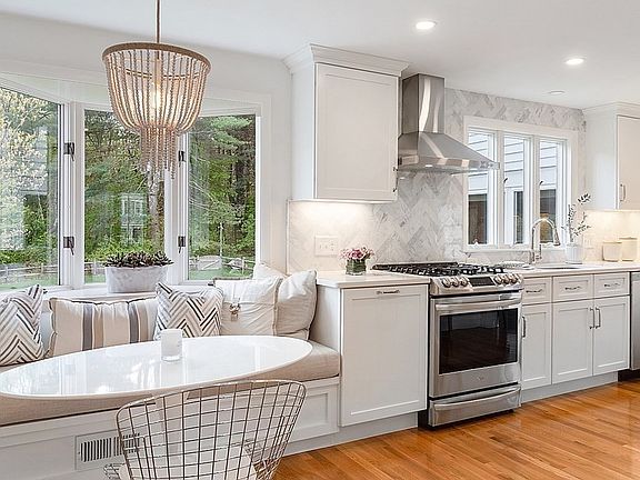 A feel of Nantucket greets you in this 2019 renovated Cape perfectly sited on just under an acre of manicured lawns, flower beds & vegetable gardens. You'll fall in love with the gorgeous white kitchen featuring quartz counters, wine/coffee bar, marble herringbone backsplash & charming built-in banquette dining area.The adjacent living room has a modern designed fireplace and ample seating . Option to have a 1st floor bedroom suite with stunning marble bathroom, oversized shower & double vanity. You'll be drawn to spend much of your time in the great room with its vaulted ceiling, open floor plan for dining & plenty of seating room with floor to ceiling windows all around. A fantastic mud room has tall, custom cabinets & soft gray tile floors. The 2nd floor comprises 2 generous bedrooms & a full bath. Hardwood floors throughout, custom closets, 2 car attached garage, finished office space in basement. See attached detailed list of renovations. Don't miss this one! 2021-05-21
