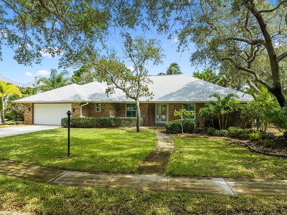 This one story 5BR, 4 bath brick beachside oasis in the Sanctuary is not to be missed! The open split bedroom floorplan features 24'' tile throughout. Kitchen has been updated with new cabinets/counters/appliances (gas range) and opens to the family room showcasing a fireplace. Plantation shutters throughout.