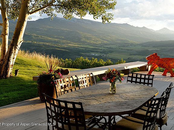 Enjoy panoramic views and spectacular sunsets from Aspen Highlands to Mt. Sopris from this Bill Poss designed contemporary home in Starwood! Situated on over 3 acres, the rolling lawns, patios and decks are perfect for outdoor entertaining and the indoor pool with cascading waterfall and custom rock Jacuzzi encourages relaxation. Features include 4 bedrooms, 4.5 baths, 6,350 heated square feet, great room with wood-burning fireplace, gourmet kitchen with cooking island, bar and separate breakfast room, formal dining room with built-ins, library with gas fireplace, master bedroom with two walk-in closets and west-facing deck, and three car garage plus a carport for an additional three vehicles. The cottage with bath and walkout patio could be used as an artist studio oprivate accommodation for guests. The gated subdivision offers acres of equestrian and cross-country ski trails, tennis courts, pasture for horses, on-site management, 24-hour security, and its own fire station and post office! Located just minutes from the ski slopes and amenities in downtown Aspen.