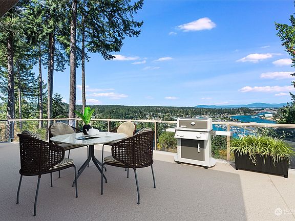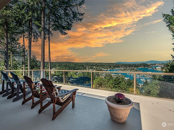 Stunning home with spectacular views of La Conner, Mt. Baker, & the channel. Situated at the top of Klamath Drive, this home exudes peace & privacy. Luxury gourmet kitchen w/ Viking Range & Refrigerator, granite & travertine. Large open dramatic living room w/ modern grand fireplace wall and vinyl plank flooring. A contemporary staircase leads to an owner's private retreat w/ equal parts spaciousness and VIEW. Central vac, level front yard, natural landscaping, RV parking. 300 slip marina, boat launch, tennis and clubhouse.Walk to quiet and breathtaking Martha's Beach. Low taxes of $4034. Lovely town of La Conner below with restaurants, shops and annual Tulip Festival. Gateway to the beautiful San Juan Islands! 3183 square feet!