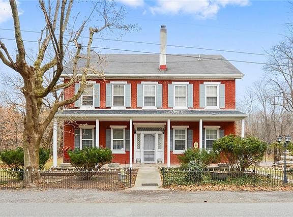 Beautiful brick Colonial that was a Bed & Breakfast in more recent years. Brand NEW septic system! High ceilings and large rooms throughout this historic gem situated on a little over 4 acres. Gracious entry foyer welcomes you with den/office to your left and living room opening to dining room on your right. Spacious eat-in kitchen with original detail and side door leads to covered porch overlooking grounds including greenhouse, a small pond, two-story barn w/ electric & additional garage. First floor laundry. Bedroom with full bathroom also on 1st floor. Ample space on second floor with additional four bedrooms. 3 additional full bathrooms, reading room and storage room. Walk-up attic for storage. 200 AMP electric service plus electric box for generator. Brand new septic! Enjoy this property for yourself or perhaps you'd consider a B & B/investment. Billboard lease on property generates $1100/year. Property being sold "as-is" and priced accordingly. You don't want to miss out!