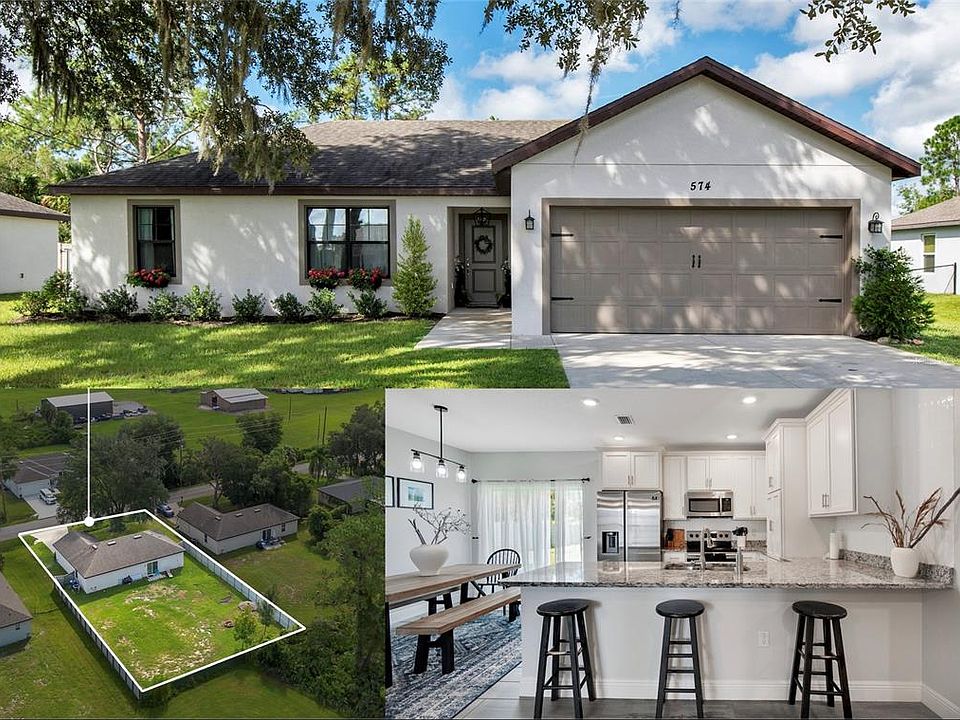 Under contract-accepting backup offers. This beautiful home is just as stunning and inviting inside as its picture-perfect curb appeal! Welcome to one of the newest and most charming homes for sale in the peaceful Hontoon Island area of DeLand, FL. Eligible for USDA financing, this is The Drake Model built by Award Winning Pioneer Construction Corp. Step inside and you will instantly feel at home in this bright and spacious 3 bedroom 2 bath split floor plan with a 2-car garage. The open layout is filled with natural light and features high ceilings, beautiful porcelain wood-look tile, and 5 1/4 baseboards that add an elegant touch. The kitchen is truly the heart of the home with granite countertops, custom cabinetry, and plenty of storage for all your cooking and entertaining needs. The backyard is just as special - a fully fenced retreat where you can relax, host barbecues, or simply unwind while enjoying peaceful nature views. Built in 2020, you can move in with confidence knowing the roof, HVAC, septic, and water heater are all brand new and worry-free for years to come. Septic was pumped in 2024 and HVAC serviced in August 2025. Whether you are sipping coffee on the patio in the morning or gathering with loved ones in the open living space, this home was designed to be enjoyed. Do not miss your chance to make it yours - schedule a showing today and start creating lasting memories in this beautiful DeLand home.