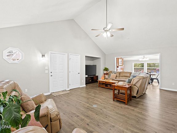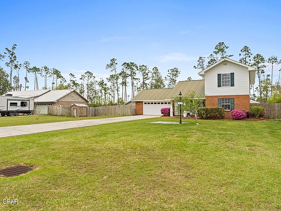 Check out this beautiful 3 bedroom, 3 bath, home with a POOL and a large GUEST HOUSE (not included in sqft). This home is located just outside the city. Only 10 miles from Tyndall Air Force Base and 10 miles to Eastern Ship Building and 6 miles from Walmart and restaurants. The exterior of this property features almost 1/2 an acre of land, beautiful landscaping, BRAND NEW SEPTIC TANK, Inground Pool, a 50amp breaker box with with 200 manual transfer switch for generator, a large pump house with extra storage space, a 2 car garage with an added full bath for guests to use while entertaining around the pool, a SEPARATE GUEST HOUSE complete with an open living room/kitchen, large bedroom with ensuite bath, and a huge walk in closet, PLUS MORE. The interior features a large, open living room and dining area with views of the pool area, tons of storage space throughout the home including under the stairs. The kitchen features plenty of counter/cabinet space, stainless steel appliances, a large laundry area with extra storage, a breakfast nook, and a separate dining area with an electric fireplace and built in shelves overlooking the pool area making this a great home for entertaining family and guests in the summer and during holidays. There is 1 additional bedroom down stairs that is perfect for guests or a home office. The master is located on the 2nd floor and features his/hers closets, a balcony over looking the pool area/backyard, and peek a boo views of Laird Bayou. The second bedroom upstairs is perfect for families with younger children that want to be close to you or would also make a great home office leaving the downstairs bedroom for guests or a hobby room. So many options with this great home. Call your Realtor TODAY to see this great home and all that it has to offer.