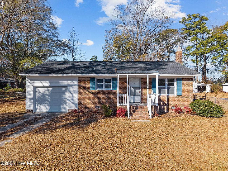 574 Simpson Street in Grimesland is the perfect blend of comfort, updates, and location. This well-kept 2 bedroom, 1 bath home offers approximately 899 square feet of efficient living space, complete with a hard-to-find one-car garage at this price point. Inside, you'll find fresh paint throughout and durable LVP flooring in the main living areas that gives the home a modern, move-in-ready feel. A brand-new central heat and air system adds peace of mind and year-round comfort.