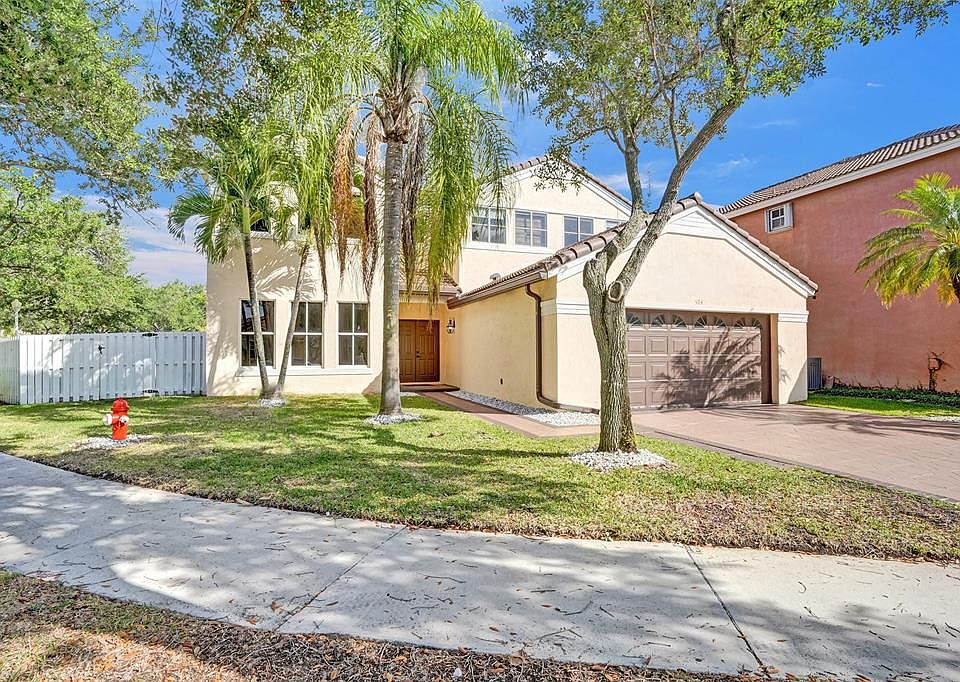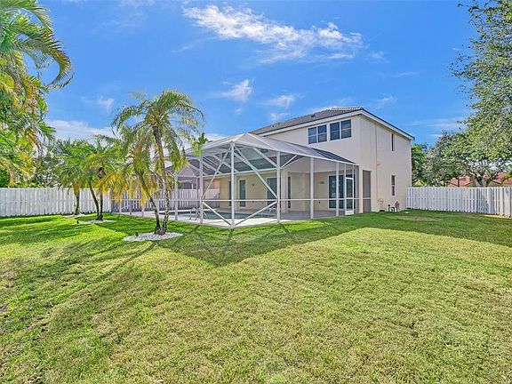 Beautiful Weston 5 bedroom / 3 full bathroom salt water pool home in the exclusive gated community of 'The Falls'. 2022 S-tile roof! First floor den can be converted to 5th bedroom. Primary Bedroom has 2 walk-in closets, ensuite bathroom with dual sinks, a separate shower and Roman size Jacuzzi tub. Brick paver walkway leads to your double door entry. Dramatic volume living ceilings make this home feel extra spacious. Large eat-in kitchen with plenty of cabinets and pantry, granite counters, and stainless appliances. Huge private fenced backyard great for a play area and pets. Fully screened pool with safety fence and covered patio. Walking distance to Eagle Point Elementary and Tequesta Trace Middle schools. Zoned for Cypress Bay High. Great schools and a neighborhood to raise a family!