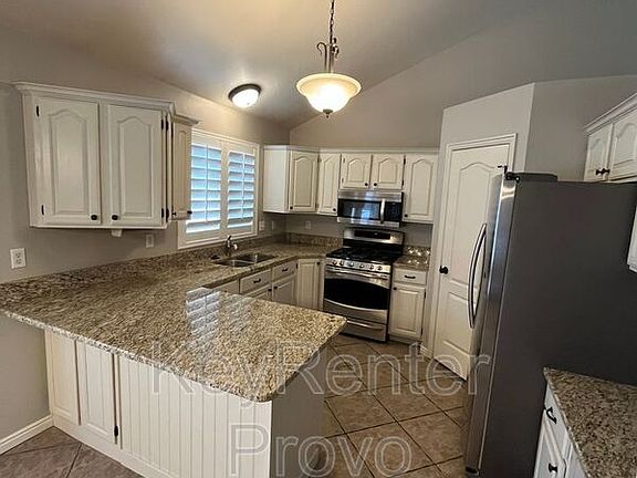 Amazing home in American Fork's favorite neighborhood! location is amazing! Fun playground in the backyard. You will love the white kitchen cabinetry, granite counter tops, stainless steel appliances including range w/ double oven & tile floors, Vaulted ceilings, newer carpet & paint throughout the home including new plantation shutters, back yard pergola, hot tub electric available, beautiful master suite w/ sep tub & shower, walk in closet & lots of windows, mature trees, new concrete & new shed. Lots of parking space available! Amenities: Dining Room, Disposal, Garage (2car), Garage Opener, Guest Parking, Living Room, Playground, High/Vaulted Ceilings, Family Room, Tile Floor, Cable Ready, Granite Countertops, Walk-in Closet, Fireplace (Gas), Shed, Basement (Finished), Air Conditioning, Driveway, Washer/Dryer Hookups, Fenced Yard (Partial)