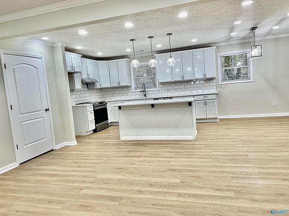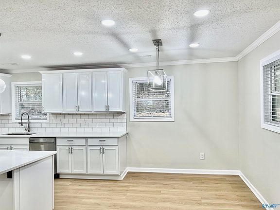 - Features: Crown Molding, Kitchen Island, Pantry, Recessed Lighting, Smooth Ceiling, Vinyl