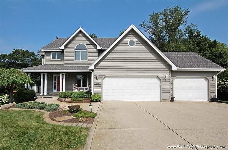 You'll love this charming, 2-story home nestled on a quite cul de sac. Sitting on over one acre the park-like backyard is spectacular for entertaining. This 5 bedroom, 3.5 bathroom home with a 3-car garage will give you over 2,500 sq ft of livable space; providing a spacious yet quaint and cozy atmosphere. Special features include two story entryway with ceramic tiles, oak trim and risers. Dining room with crown molding, kitchen with oak cabinets and floors, and family room with fire place. Adjacent to the family room is a four season's sun room with scenic views and access to the back deck and yard. Upper floor master has gorgeous trey ceilings, master bath with double vanity and jet tub. Beautiful finished basement walks out to a paving brick patio with incredible overhead pergola. This is a house you will not want to miss.