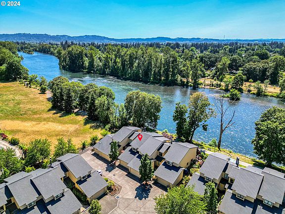 Fabulous riverfront with views! Can you imagine a riverfront property in town?! This two-story condo on the Willamette River in the heart of Eugene has everything you could want in a home! The location in River Island Estates is perfect; close to shopping, restaurants, paths, and the Delta Ponds! The updates to the home are fresh! The view from each floor is spectacular! This two bedroom home with two and a half baths has a terrific floor plan with an additional nook/relaxing area and large living space upstairs and down. Cozy up to the fireplace downstairs in the living/dining area off of the patio. Star gaze from the enclosed deck upstairs. Relax on the back patio with the river sounds and water views. The updated kitchen has Silestone countertops, stainless steel appliances, a breakfast bar and room for a kitchen table. New carpet in 2023 and hardwood floors as well. Put this gem at the top of your list to see today!