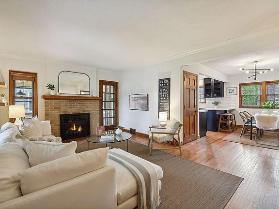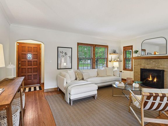 Charming brick 1 1/2 story home in the sought after Diamond Lake neighborhood. This lovely 3 bedroom, 2 bath home is move-in ready and full of sunlight and stylish details. The living room features a wood burning fireplace and an attached 3 season porch. The open floor plan is perfect for entertaining with the living room open to the dining area and kitchen. The beautifully renovated kitchen features espresso stained cabinets, quartz counters, stainless appliances, beverage cooler and a breakfast bar. 2 main floor bedrooms and a vintage full bath. The 2nd floor is the perfect getaway with a bedroom area, office nook and a sitting area that could easily be converted to a walk-in closet. Pretty 1/2 bath with room for adding a shower in the future. Tons of space to finish in the lower level. Lovely backyard with beautiful landscaping including 2 patio areas. Central AC and 1 car garage.