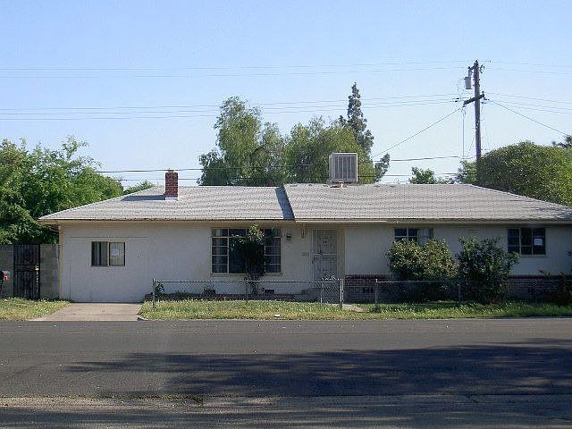 Check out this nice little place! It is clean, has 3 bedrooms and 1 1/2 baths, new carpet, vinyl and paint, a nice living room with laminate flooring and fireplace, an enclosed garage that serves as a gameroom, a fenced front yard and fenced backyard with a POOL! There is a little covered patio out back and room for your ideas! Ashlan is fairly busy here, but there is a bike lane AND a parking lane that makes access to the home easy - and you can park inside the fenced front yard too. Believe it or not, this one is going to go quickly at this price with what it offers! Take a look before it is GONE!