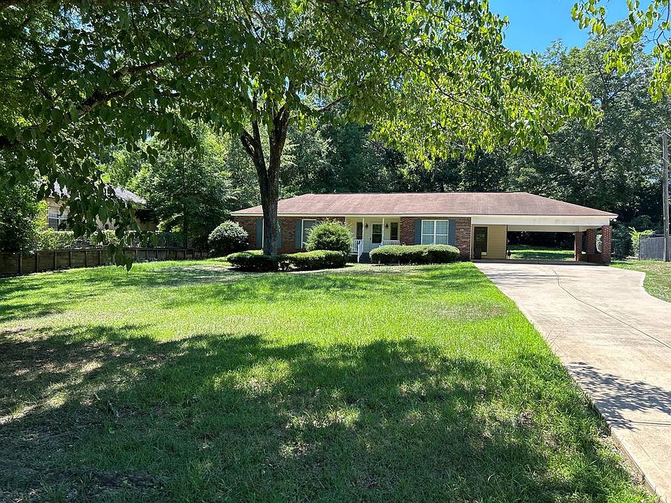 NEW architectural shingle roof! Great room, beautiful updated kitchen with island and serving bar, breakfast area, pantry stainless steel appliances, 5 burner gas stove, refrigerator, pantry and tile floors, wooden floors throughout living area, tile in baths, 3 bedrooms, 2 baths, screened in back porch, carport, 2 outside buildings with electricity and window units, screened porch, shed w/garage door, fenced yard, wooded in the back and on over on a .61 acre lot!!
