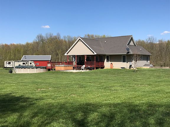 - Features: Water Softener, Pool Above Ground, Hot Tub, Ceiling Fans, Porch Covered, Garage Opener, Pole Barn, Deck Covered, Laundry