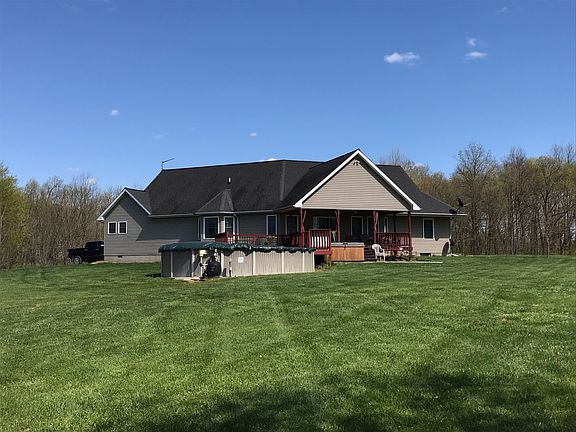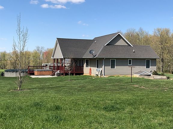 This beautiful Wabash county home sits on 10 acres of property and offers tons of privacy and space. The entry way and kitchen/dining area features beautiful hardwood oak floors. The master bath features a double shower as well as a soaking tub. This home has a partially finished walk-out basement with 2 additional bedrooms and full bathroom as well as laundry room, family room and workshop. The home has thermal records throughout as well as high efficiency HVAC. The back deck is covered and offers privacy and a great place to retreat after a busy day and a nice above ground pool and a hot tub. Another bonus feature is the pole barn for extra storage or whatever you want to fill it with. If you are looking for privacy and plenty of space, this is the place for you.