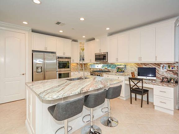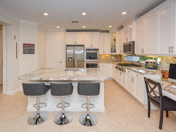 Elegant 3-story townhouse in upscale Trieste in East Boca Raton. Spacious 4br/3.5 bath Bellavita model has bonus room, 2 car garage and a private elevator. Meticulously maintained this home features open updated kitchen/family room w/wood cabinets, granite counters, newer double ovens, and newer gas cooktop. Spacious master suite has two large walk-in closets, newer shower, whirlpool tub and dual sink vanity. Additional features are impact glass windows, gas hot water, gas clothes dryer, covered patio and fenced-in back yard. Located in a private setting near the community pool. Maintenance fees include lawn and shrub maintenance, cable, security, manned guard gate and community pool.