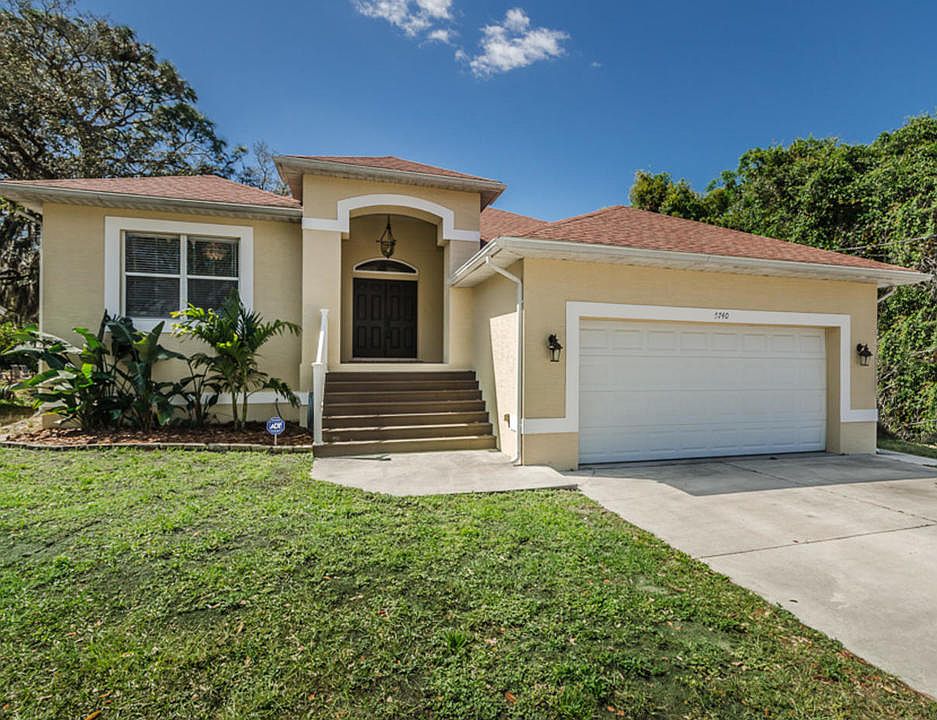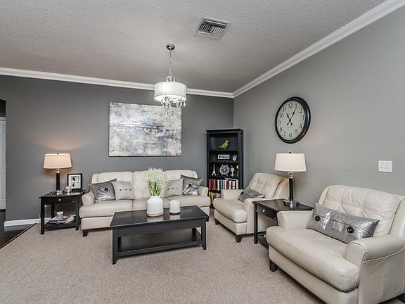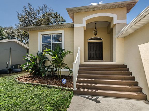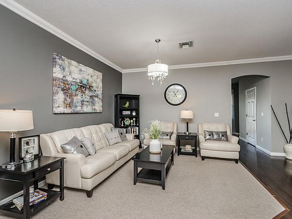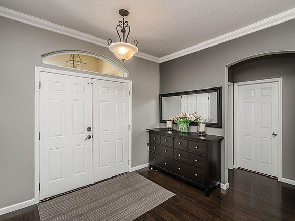 Built in 2006, this beautiful 4 bedroom, 2-1/2 bath home is situated on a corner lot and features a fabulous backyard! Double entry glass front doors invite you inside where you'll find a spacious family home inclusive of a formal dining room, eat-in kitchen, great room and lanai for excellent outdoor entertaining. Thoughtful appointments throughout include crown molding, custom trim, wainscoting, wood laminate flooring, ceramic tile, plush carpet, neutral paint and arched walls. The chef's kitchen features custom wood cabinetry, stone backsplash, center island with butcher block countertop and a suite of stainless steel appliances. Hidden laundry space tucked just off the kitchen and includes stackable washer and dryer. Head outside to your private, fenced backyard with above ground swimming pool and room for a playground, garden or barbecue area. A covered lanai welcomes casual or dining furniture or enjoyment day or night. Contact us today to schedule your private viewing.