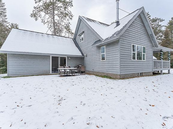 This well appointed 3 Bedroom/ 3 bathroom home on the Wisconsin River is bright and airy, with vaulted ceilings, an open concept kitchen/dining/living room and attractive freestanding woodstove. The property has 245 ft. of shoreline, a private riverfront location with no visible neighbors, and lands across the road owned by Wis DNR. Plenty of scenic water views are visible from the lakeside porch, patio and the home's interior. The original dwelling with basement was built in 1998 , a master suite addition built in 2004 which includes an attached full bath and walk-in closet, along with sliding door to a waterfront patio. A 2nd bedroom/full bath are found on the main level, a 3rd bedroom /attached full bath and two walk-in closets upstairs. The unfinished basement and attached garage offer ample storage. Numerous recent upgrades include kitchen remodel with quartz counters and stainless steel appliances and custom pantry, new ceiling fixtures, interior paint and tasteful landscaping.