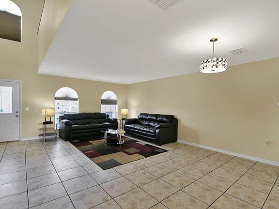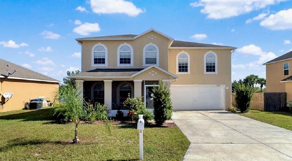 Are you looking to save thousands on the purchase of a new home? Well look no further, this home qualifies for a No Closing Cost Loan. Here is your opportunity to own this move in ready 5-bedroom, 4 bath home situated on a quiet street with a Cozy Front porch, an open floor plan, DOUBLE MASTER SUITE, and high ceilings. Upon entering you are greeted by the formal living room /dining room combo with ceramic tile throughout and plentiful lighting, making this a great space for entertaining or gathering with loved ones. The spacious UPDATED KITCHEN is designed with the home chef in mind with ample counter space, STAINLESS STEEL APPLIANCES, plenty of cabinets, GRANITE COUNTERTOPS, TILE BACKSPLASH, two closet pantries and a huge Island with breakfast bar. Two Master bedrooms, one on each floor include their own private bathroom with walk in closets, soaking tub, separate shower and vanity. Additional bedrooms share a nicely appointed bathroom and generously sized, ideal for large families, guests, home office, craft/hobby room or nearly anything else to fit your lifestyle needs. Ideal location sets the stage for a truly convenient lifestyle: Just minutes from a variety of restaurants, entertainment, shopping and Theme parks (Lego land 10 min and Disney 30 min commute). Also discover nearby lakes and parks lakes for an array of recreational activities perfect for the outdoor enthusiast. Come and see all this home has to offer, schedule showing today before its too late!