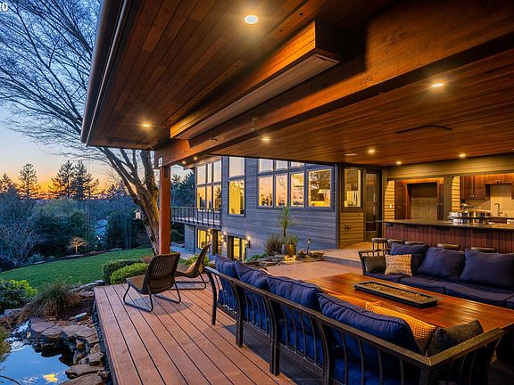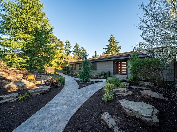 Open Thurs 3/12 4-6PM - A perfect blend of mid-century lines, contemporary design, and modern updates that you would expect with new construction. Completely rebuilt and redesigned 6 years ago. A feeling of total privacy and openness awaits. Soaring vaults under the new modern shed roof line, wall of windows shows off a beautiful southern view and lets in so much light. Over 1500 SF of outdoor covered living space w/ fireplace, gourmet kitchen, water features and lush yard/gardens. [Home Energy Score = 8. HES Report at https://rpt.greenbuildingregistry.com/hes/OR10182752]