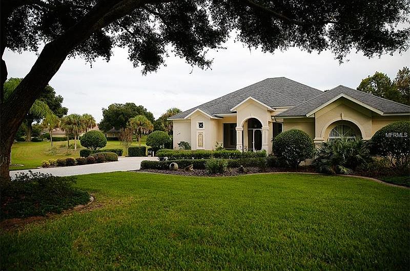 A CLASSIC BEAUTY...Former model home boasts 3,012 Sq. Ft. of living space this GOLF FRONT ....(13th hole) with WATER VIEW home is exquisite in craftsmanship and other fine details. Upon entering the home you will notice the expansive ceilings, lots of retractable and stackable sliders to reveal a view to the golf course. 3 Bedrooms, 2.5 Baths, Formal Living Rm., Family Room with electric fireplace and Kitchen Combo is just a few of the highlights. Eat-in Kitchen features framed glass bay window & a center island, pantry, Granite counters with loads of cabinets. Easy for Entertaining. New Samsung refrigerator, Smooth cook top, built in microwave and double wall oven. The Master Suite is lovely and features French doors to Master, bay window for incredible views to the outside. Master Bath includes HIS & HER vanities, jetted garden tub, large shower with with dual head shower. Built-in desk and bookshelves in the den is great for a private at home office or hobby room. Large Lanai at the rear of home is spacious featuring built-in cabinets. Great area for relaxing and entertaining. Gallery style hallway with book shelves leads to two sizable guest bedrooms with a shared " Jack n Jill" bath. Other features include, 6 Ft widened driveway, built in coffer ceilings, no direct sun, faces to the East, garage features interlocking heavy duty vinyl tile flooring with a 10 yr. guarantee. Manicured lawn...approx. half acre "rare find" lot & unique designed home!