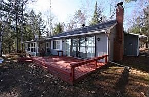 This is an excellent opportunity to get on prestigious Stormy Lake. There is 199 feet of beautiful sand beach and the views are incredible. The 3 bedroom, 3 bath home features an open kitchen, living and dining area, fireplace with gas insert and patio doors leading onto a lakeside deck. There is an attached 2 car garage, detached 24 x 30 garage for the toys, a 12 x 16 storage shed and three season porch overlooking the lake. This is an incredible value!
