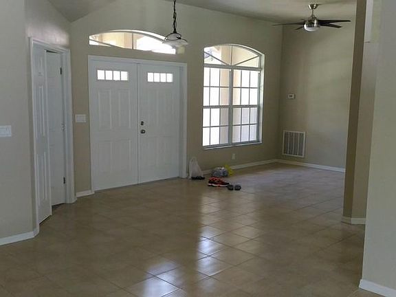 Large 3 bedroom, 2 full bath, with additional room for office and large two car garage beautiful just renovated pool home sitting on 2 property lots. Located in most attractive part of North Port. The house features open floor design, tile throughout main rooms, and hardwood in the bedrooms. Large family room with high ceilings. Kitchen has a bar with seating for two (homework spot). Large pantry and laundry room with ample storage throughout the home. Sliding doors off the dining/living room and from the Master Bedroom take you right out to the large screened-in lanai with ceiling fans and a peaceful private view. Master bedroom features 2 large closets and walk in shower with bathtub. Ceiling fans throughout. New efficient A/C and all stainless appliances. Washer/Dryer included. Great location close to highways, beaches, shopping, and dining. NON-Smoking. Cats or small dogs ok. Pool maintenance is $125 additional. Call Eugene.