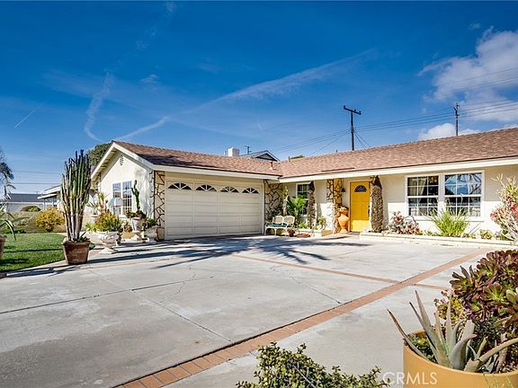 This lovely home resides on a quiet cul-de-sac, while offering nice curb appeal and plenty of quality upgrades throughout. As you enter the home, you are greeted by a formal living room with travertine flooring, which flows into the dining room/den with a fireplace. Next comes the kitchen, featuring updated cabinets and granite counter tops. There is a fully permitted (336 sq. foot) family room addition at the rear of the house. The hall bathroom has an updated bathtub with tiled shower surround + a pedestal sink. The bedrooms offer crown moldings, mirrored closet doors and laminate flooring. There is also an inside laundry room. Bonus features include; tile flooring in the entry, kitchen, D/R and family room, smooth ceilings, recessed lighting, crown molding, dual pane windows + a 30 year roof installed in 2012. The private rear yard features a large covered patio, wide side yard for extra storage and block wall fencing. The front yard has a grassy area, a privacy wall and an extra long driveway, which could be expanded to create RV access. This fabulous home is also walking distance to award winning schools, a park, golf, shopping, restaurants and is only a 5 minute drive to the beach!