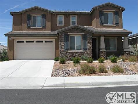 This stunning Palmdale home looks and feels brand new with stainless steel appliances in kitchen, granite countertops, custom blinds, carpet, tile, and recessed lighting throughout. Solid surface bathroom counters, large laundry room, and master suite with double vanity, garden tub and stall shower. Five bedrooms upstairs with one down could be used as study or guest bedroom, and a Three car tandem garage. This home is nestled in the quiet family friendly Beazer Homes tract with its neighborhood showing the pride of ownership close to shopping and much more! Included with offer above selling price: Samsung French Door Refrigerator, Wall Mounted 75 inch Samsung Magnolia Led TV with Bose 5.1 Surround Sound Home Theater in family room, Washer and Dryer machine, and optional Vivint Home Alarm System.