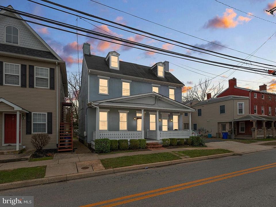Old meets new in Elkridge! This historic home built in 1888 was renovated in 2010 and is freshly painted and has so many charming features! Solid wood front door! Covered front porch! Soarining ceilings! Wood floors on two levels! Big huge living room with an electric stove and brick surround! Sunken library with buit-ins and recessed lights! Formal dining room! Wood blinds! Spacious kitchen with maple cabinets and stainless steel appliances! 1st floor powder room! Rear entrance leads to the brick patio, walkway and fenced yard with a shed too! Upstairs you'll find spacious bedrooms and a renovated full bath too! Don't miss the potential in the attic that could be finished or the big unfinished basement! Plenty of street parking and you can walk to the Rathskellar Restaurant too! **ZONED BOTH RESIDENTIAL AND COMMERCIAL! Could be your home and/or a daycare, hair salon, spa, medical office, retail space, professional office, vet/kennel or more!