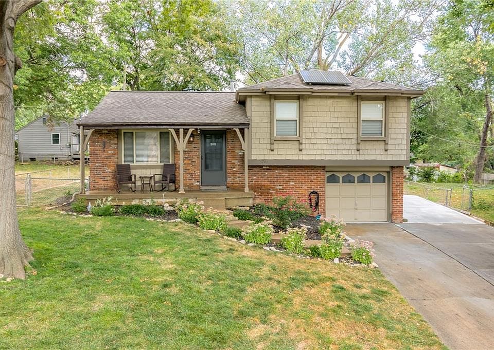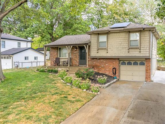 This is the one you'll want to call home! Beautifully updated throughout and beautifully landscaped. Nice kitchen with plenty of new cabinets, granite counters, smooth cooktop, built in oven and and new stainless dishwasher. Spacious dining area is open to the living room which makes it nice when having parties. If you like dining and entertaining outside just step out from the dining area to the expanded patio, firepit and rocked conversation area in the fenced backyard. Backs to the East so no need to wait until the sun goes down to enjoy the patio and yard. Finished rec room with custom built bar makes perfect man cave, 4th bedroom, home office, children's hangout or 2nd living area. The front porch is actually deep enough to use - so enjoy reading your newest book or just relaxing and getting some sunshine! Other updates include: bathroom with granite vanity counter, refinished hardwoods, new trim, basement finish, windows, solar panels & system, water heater, 30 year Certainteed roof, Smart garage door system, French drains added around entire property, additional parking space added at side of house from the double wide drive, refinished garage floor. Home is tucked away within a quiet neighborhood yet is close to shops, restaurants, entertainment and main roads for quick and easy access to KCI, downtown and all areas of the metro. Better Hurry!!