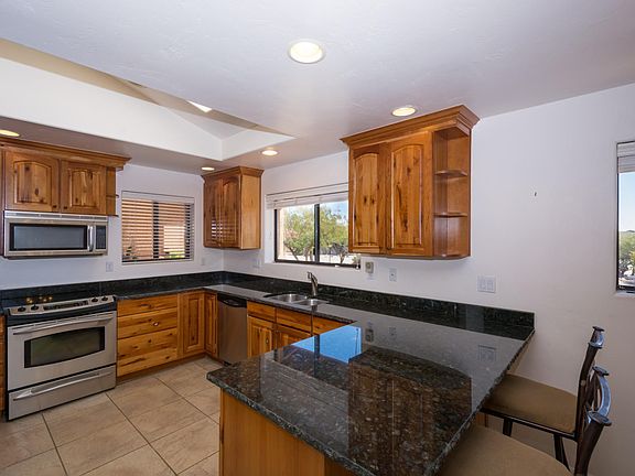 For more information on this property, contact the Listing Agent, Peter DeLuca at (520) 977-4770 or PeterDeLuca@realtytucson.com. This beautifully updated Shadow Hills home with awesome mountain views is sure to please even the most discriminating buyers! From the Lovely kitchen w/gorgeous granite, SS appliances, cherry cabs & bar seating to the 2-way fireplace between living & family rooms, amazing vaulted wood ceilings, light & bright open floor plan, rich wood doors & large format tile. Master offers cozy beehive fireplace & fabulous bath w/granite, dual vanities, jetted garden tub, separate shower & large walk-in closet. Outside you will find more mountain views, large covered patio, walled in yard & replastered pool w/removable safety fence. Additional features include dual cooling, 3-car garage, private lot, wood shutters & blinds & the entire exterior freshly painted. This is the one you've been waiting for!