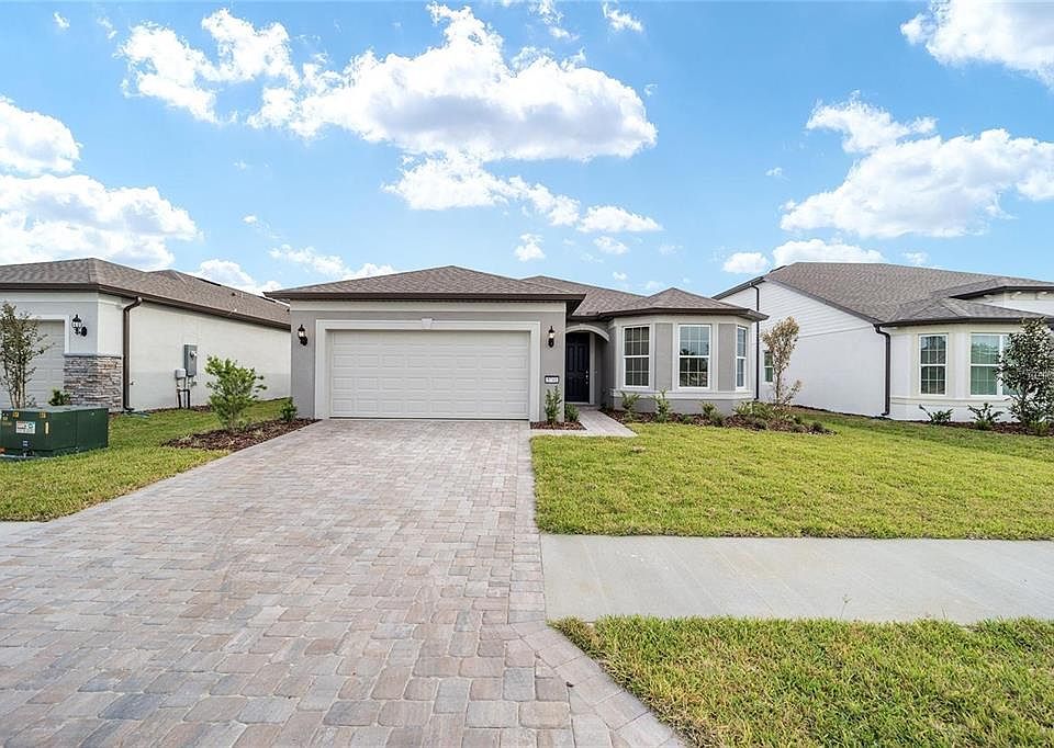 ALMOST BRAND NEW 3/3/2 plus flex room custom MYSTIQUE home with 3 beds/3 baths in the popular Stone Creek 55+ community! GORGEOUS home ~ BARELY LIVED IN! This beautiful home is light and bright with an open floor plan and beautiful finishes throughout. The kitchen has a large island, SS appliances (refrigerator is included but not pictured), and walk-in pantry. The bedrooms are a triple split plan, each with their own bathroom. The amazing master suite has a tray ceiling, large closet, walk-in shower with seat, dual sinks, and water closet. The flex room is a great space for an office or den. Inside laundry room includes washer/dryer, sink, and extra storage. Enjoy relaxing on the oversized lanai. Garage has epoxy floor. Del Webb's Stone Creek is a fabulous community with a championship golf course and wonderful amenities! Great quality of life here! Convenient location to shopping, dining, medical, parks, and WEC!