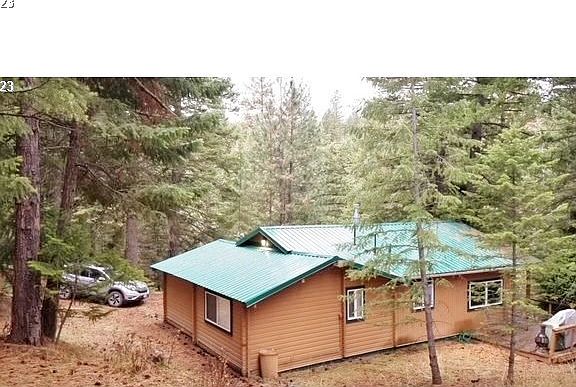 "Cabin in the woods!" Very private 800 sf(m/l) 2 bed, 2 bath cabin in the Blue Mountains near Heppner. 5 wooded acres with cabin, 16x24 ft(m/l) shop/garage, and smaller 10x14 ft(m/l) storage shed. Cabin comes furnished. New laminate floors also. Small creek runs through the property.