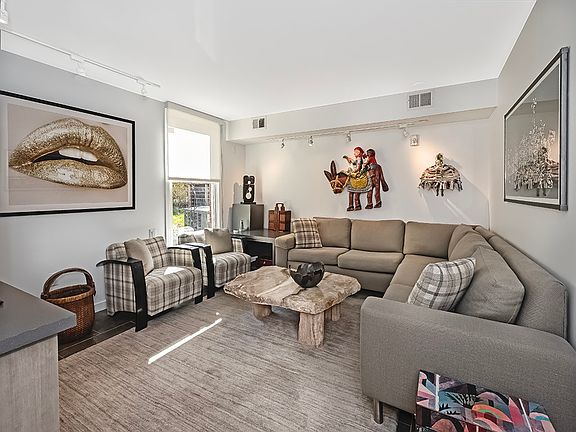 One of a kind condo, professionally designed & elegantly decorated with every amenity for gracious living. This is the only owner since a complete bldg renovation including state of art safety features in 2017/18. This much desired open floor plan over 2000 sq. ft. is flooded with natural light in all rooms, & leading to a private outdoor patio, for sunning or grilling. Two spacious bedrooms and gorgeous baths & a third bedroom with built in storage is currently used as a cozy den. A convenient laundry room adjacent to the kitchen includes a freezer and pantry. There is storage throughout in large closets and built in units. Included in the sale are 2 tandem garage spaces in the heated garage. There is a storage unit in the garage for this unit. DINING ROOM CHANDELIER IS EXCLUDED.