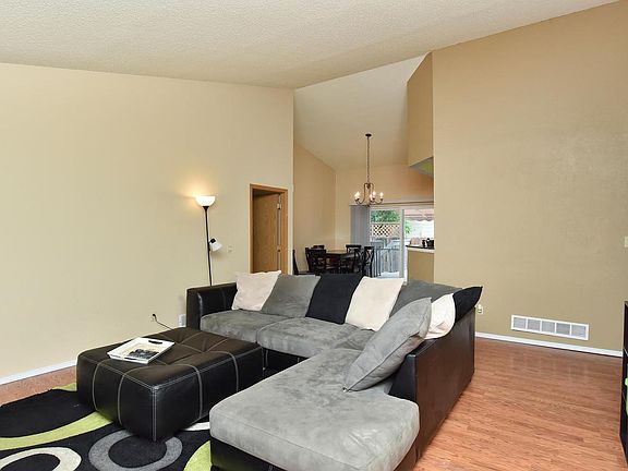 Charming ranch home in Wright Farms neighborhood! Open layout with vaulted ceilings throughout. Hardwood laminate flooring located at entry, family room and kitchen. The kitchen includes white cabinetry, full appliances, and a pantry. Large master bedroom with 3 separate closet spaces and private master bath. The backyard has an over-sized deck with a retractable awning. Brand new exterior paint. Located in Adams 12 five star school district, close proximity to lots of shopping and restaurants!