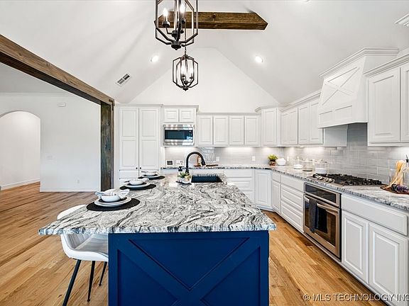 Perfect for Entertaining! This award-winning 2020 Parade of Homes stunner sits on a spacious half-acre lot with no HOA!—giving you the freedom to truly make it your own. The open-concept floor plan features a large living area that flows seamlessly into the custom kitchen and dining spaces. You’ll love the high-end cabinetry, granite island, and hidden walk-in pantry. The luxurious master suite offers a walk-in shower, separate vanities, a large garden tub, and an impressive three-tier closet. Step outside to the expansive covered back patio—ideal for relaxing or entertaining guests.