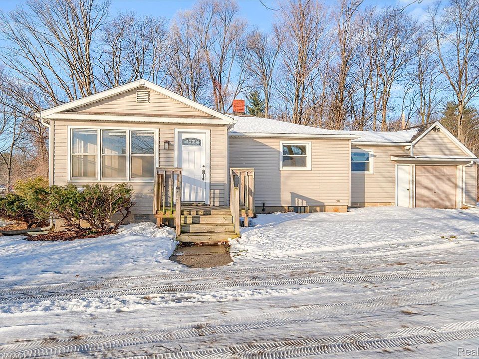 Situated on a beautiful 1.5 acre lot sits this charming two bedroom move-in ready ranch! The home features a spacious kitchen with plenty of cabinet space. The living room and both bedrooms include hardwood floors. Lots of solid oak trim is throughout the house as well as a fresh coat of paint. The full bath has a tub and newly updated granite top vanity. There is a mudroom between the home and garage that could be the perfect spot for first floor laundry. A four seasons room off the side of the home offers a great spot for your morning coffee. Downstairs is a full unfinished basement with tons of opportunity. The well was new in 2025 and hot water heater was recently replaced also. A one car garage is attached. Out back is very private with over a half acre of wooded property and plenty of room for get-togethers! Just 15 minutes to downtown Lapeer.