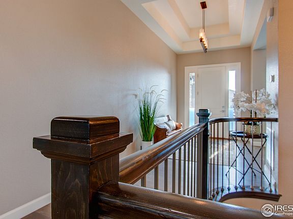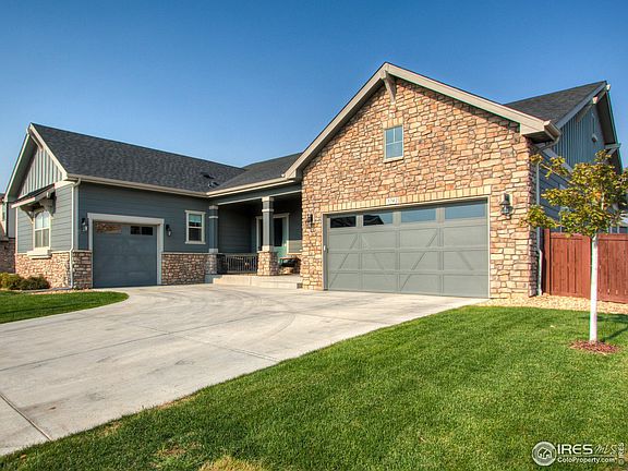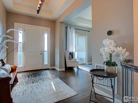 Elegant and dramatic contemporary open ranch plan. 10 Ft ceilings, open stair well to lower level. Stunning finishes throughout. Double sided fireplace. Beamed ceiling. Upgraded stainless appliances. Outdoor entertaining at its finest. Backing to a very tranquil setting overlooking vast greenbelts. Amenities include gym, park, trails, pool and clubhouse. A premiere location with easy access to Fort Collins, Loveland, Windsor, Greeley and I-25. Walking distance to Poudre River and Poudre Trails! Show home condition.